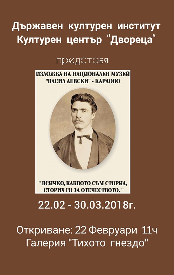 В Галерия „Тихото гнездо” на Културен център „Двореца” – Балчик ще бъде открита фотодокументална изложба на Национален музей „Васил Левски”- Карлово. Тя успява да обхване всички важни моменти от живота на Апостола, родното място и семейната среда като първоизточници на неговото родолюбие и демократизъм преди всички по-сетнешни влияния на европейската революционна и политическа практика. Включва оригинални снимки на Васил Левски, снимки на негови близки, на родното Карлово, на други селища, свързани с революционната му дейност, факсимилета на негови писма, документи на революционната организация и БРЦК.