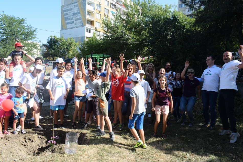Проектът _МЯСТОТО подкрепя развитието на местните общности и създава активни градски пространства, които да се превърнат в предпочитани от младите хора места за дейности на открито. Инициативата преобразява непопулярни градски пространства и ги оборудва с подходящи материали, както за развлечение, така и за развиване и сплотяване на общностите в града. _МЯСТОТО - Ябълката в Добрич обедини млади таланти от града, които трансформираха изцяло пространството и заедно създадоха наистина креативна среда, подходяща за почивка, творчество и активно движение.
