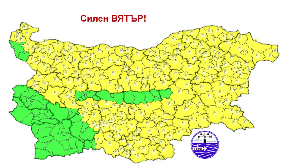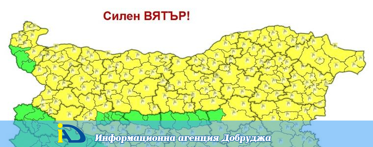 За днес от Националния институт по хидрология и метеорология е издаден жълт код за силен вятър в почти цялата страна, като се посочва, че скоростта му е 50-69 км/ч., а поривите ще достигат до 90 км в час. В тази връзка областният управител Живко Желязков апелира за повишено внимание при движение на открито. Трудови дейности, които се извършват на открито да бъдат съобразени с изискванията за безопасни и здравословни условия на труд. Хората да бъдат внимателни при преминаване покрай сгради и дървета и да не се оставят на открито неукрепени предмети, призовава още Ж. Желязков.