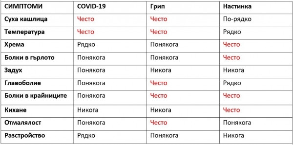 Понякога е много трудно да различим симптомите на коронавируса, сезонния грип и обикновената настинка.