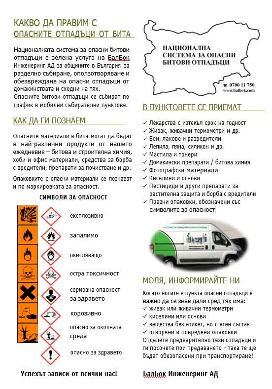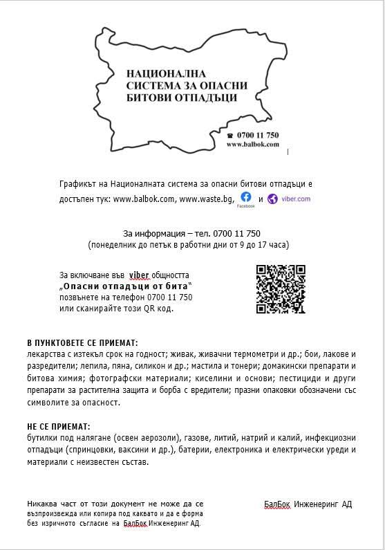 Кампания за събиране на опасни отпадъци от домакинствата ще се проведе на 24 март в Каварна. Инициативата се организира от Община Каварна съвместно с “БалБок Инженеринг”.