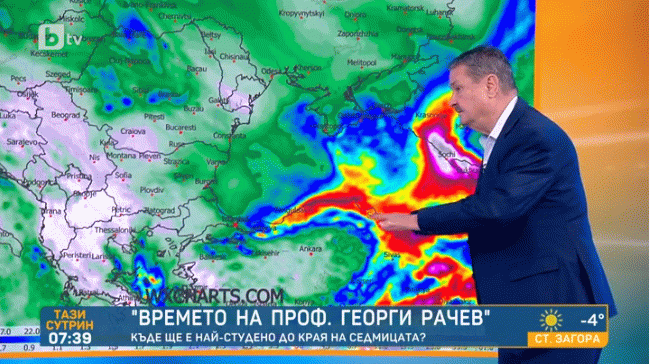 След обяд Източна България ще бъде обхваната от облачна система, която ще доведе до малко дъжд, малко сняг“.От утре идва хубаво затопляне. Това съобщи в предаването „Тази сутрин“ климатологът проф. Георги Рачев.