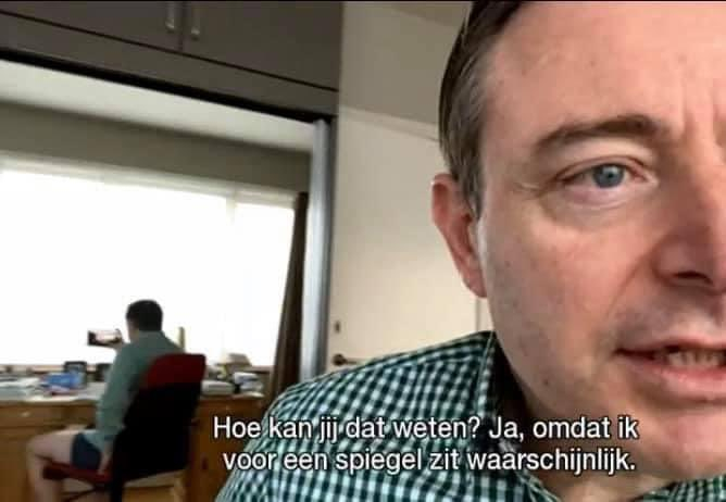 Де Вевер, лидер на партия Нов фламандски алианс (N-VA) и един от най-влиятелните политици в Белгия, направи грешка да даде интервю пред огледало, което показва голите му крака.
