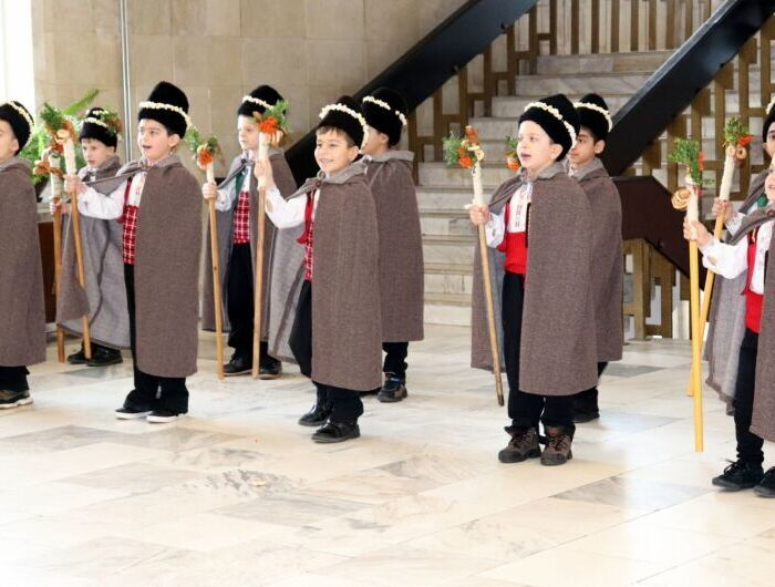 Малките коледарчета, нахлупили черни калпаци, наметнали тежки ямурлуци и с овчарска гега в ръка пристигнаха с песен и първо поздравиха стопанина. След това пресъздадоха по уникален начин с ритуала Коледуване българската народна традиция за празничните Бъдни вечер и Коледа. Децата пяха и наричаха за здраве и благополучие на малки и големи.