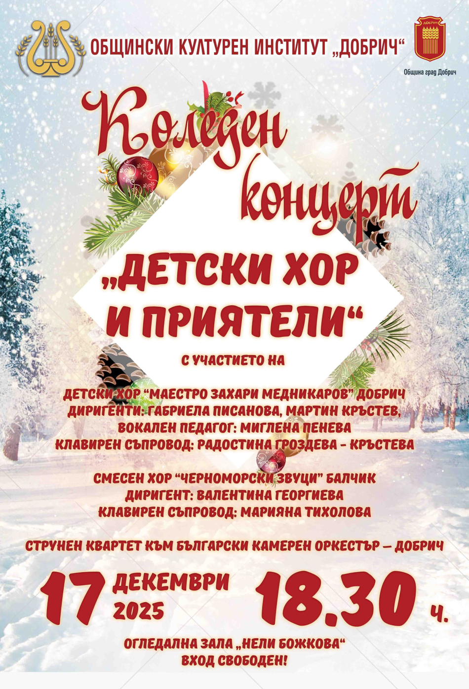 На 17 декември в 18:30 ч. Огледална зала „Нели Божкова“ ще се превърне в сцена на празнично вдъхновение с коледния концерт „Детски хор и приятели“ – едно от очакваните музикални събития пред този месец в Добрич.