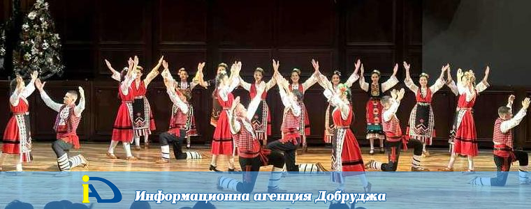 Зала „Добрич“ се изпълни снощи с празнично настроение и български фолклор по време на коледния концерт на Представителния фолклорен танцов ансамбъл „Добротица“, Детска танцова студия „Добрич“ и клуб „Пъстър хоровод“ към Младежки център „Захари Стоянов“. Под ръководството на Юрий Митев и Инна Желева, съставите представиха богата програма. Чрез танца те пресъздадоха обичаите, свързващи Коледа, с прехода към ново начало.