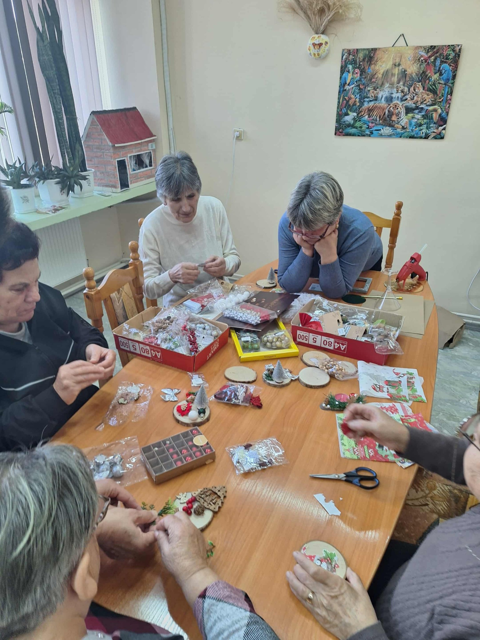 В първите за сезона артерапевтичните занимания те украсяват с много старание свещички, изработват картички, декорират с коледни мотиви пана, рамки за снимки, чаши. Горещият билков чай и спомените за техните минали коледи са неизменна част от творческия процес.