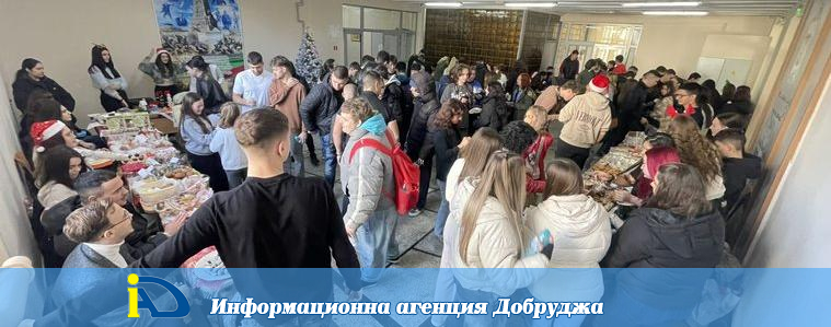 За втора поредна година в ПМГ „Иван Вазов“ - Добрич се проведе коледен базар с благотворителна цел. Инициативата е организирана от ученическия съвет на гимназията с председател Боян Петров от 11 А клас. За Медийна група „Добруджа“ той заедно с още един член на съвета Иван Тодоров от 12 А клас споделиха, че средствата, събрани от това събитие, ще бъдат дарени на Дом за отглеждане и възпитание на деца, лишени от родителска грижа „Дъга“, за да се закупи най-необходимото за тях. Непродадените артикули също ще им бъдат подарени.