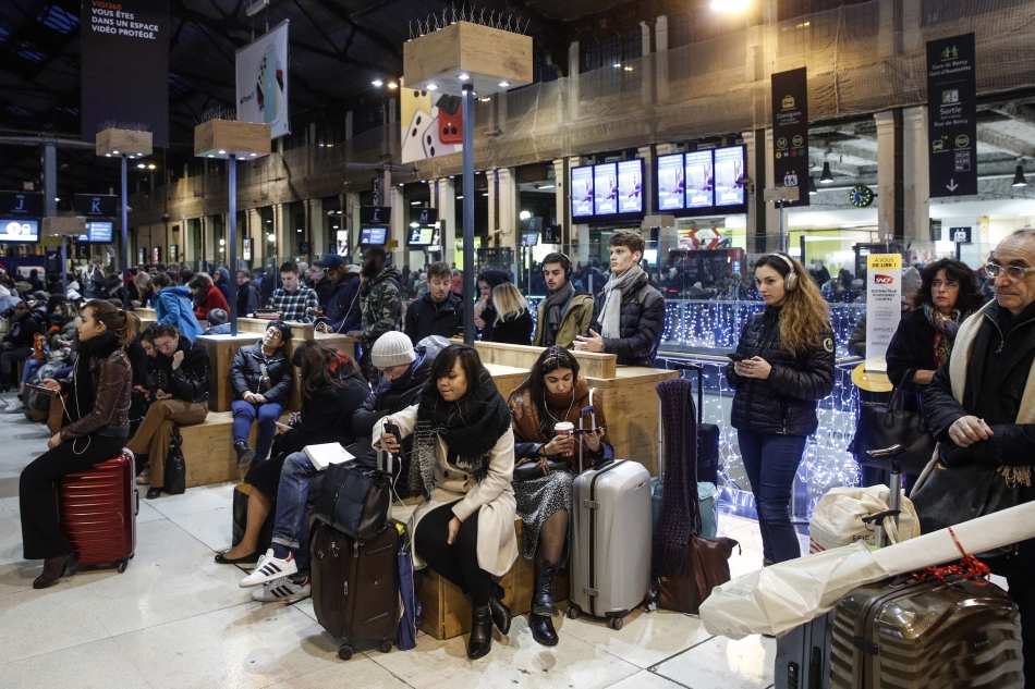 Две седмици на масирани стачни действия срещу планираните пенсионни реформи на Макрон блокираха голяма част от Франция. Железопътният транспорт, включително високоскоростни влакове TGV и парижкото метро, работят с половината от нормалния капацитет.