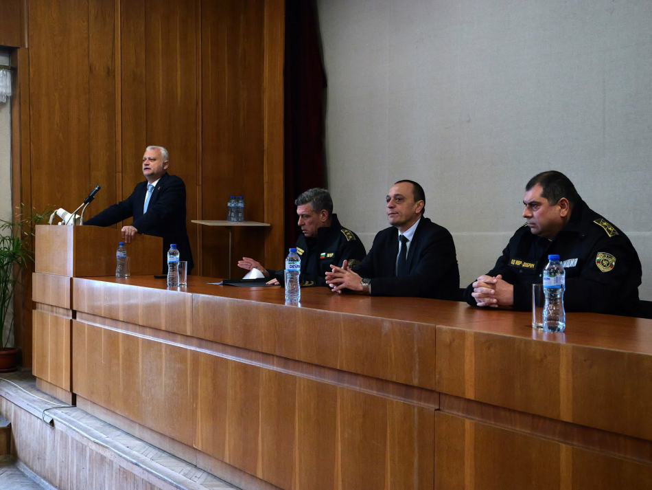 Министърът на вътрешните работи Емил Дечев проведе работна среща със служителите на Областната дирекция на МВР - Добрич. В нея участваха заместник-министърът на вътрешните работи Калоян Милтенов и главен комисар Георги Кандев, и.д. главен секретар на МВР.