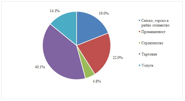 Нетните приходи от продажби са в размер на 3, 851 млрд. лв., което е с 1.4% по-малко в сравнение с предходната година. Предприятията от сектор „Търговия; ремонт на автомобили и мотоциклети“ са реализирали най-голям дял от нетните приходи - 40.1%, следвани от предприятията от секторите „Селско, горско и рибно стопанство“ (19.0%) и „Преработваща промишленост“ (18.6%).