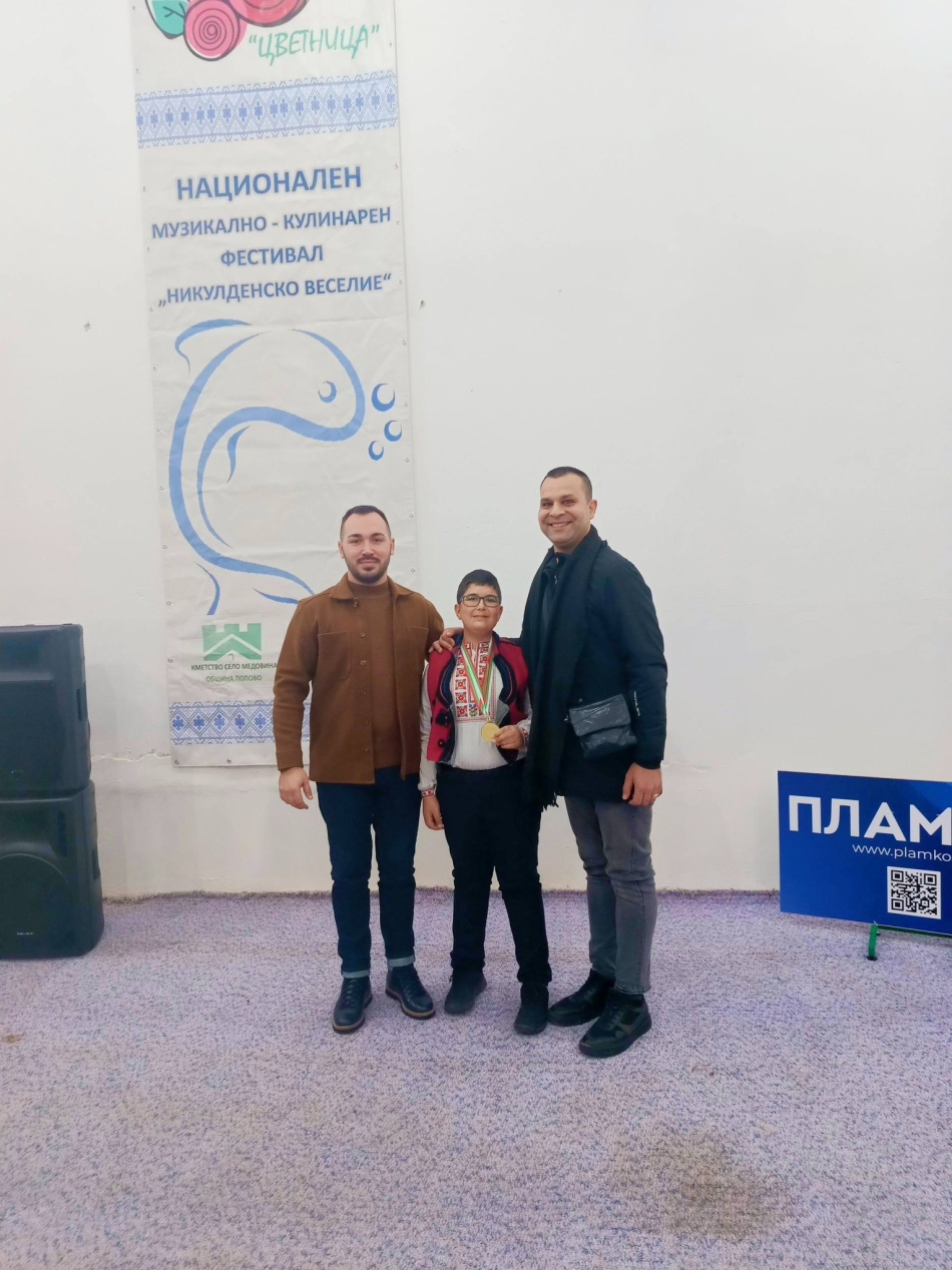Малкият певец бе награден с първо място, златен медал и специална покана за участие в националния фестивал „Живите корени“, който ще се състои в град Търговище.