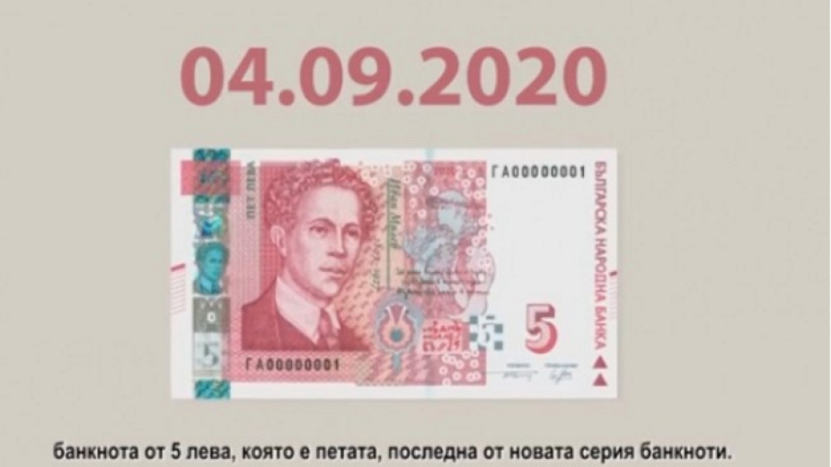 От днес влиза в обращение новата банкнота от 5 лева, припомнят от БНБ. Тя е последната от новата серия банкноти, които са с осъвременена защита. Общият дизайн се запазва без съществени изменения спрямо банкнотите, които са в обращение, но има нови допълнителни защитни елементи. Новата петолевка ще е валидно платежно средство заедно с тези от емисиите от 1999 и 2009 г.