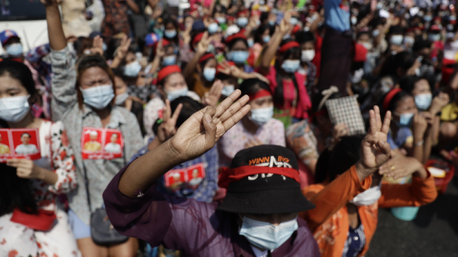 Улични протестни прояви имаше в двата най-големи града Янгон и Мандалай, в столицата Найпидау и другаде. Участниците в тях настояваха да бъде възстановено управлението на цивилното правителство на премиера Аун Сан Су Чжи, а също да бъдат освободени тя и други членове на нейната Национална лига за демокрация. Снощи военните окупираха седалището на Лигата, а в Найпидау и Мандалай полицията разпръсна с водни оръдия и предупредителни изстрели демонстрантите. В столицата полицаите стреляха по протестиращите с гумени куршуми, а вероятно и с бойни патрони, твърдят очевидци и местни медии.