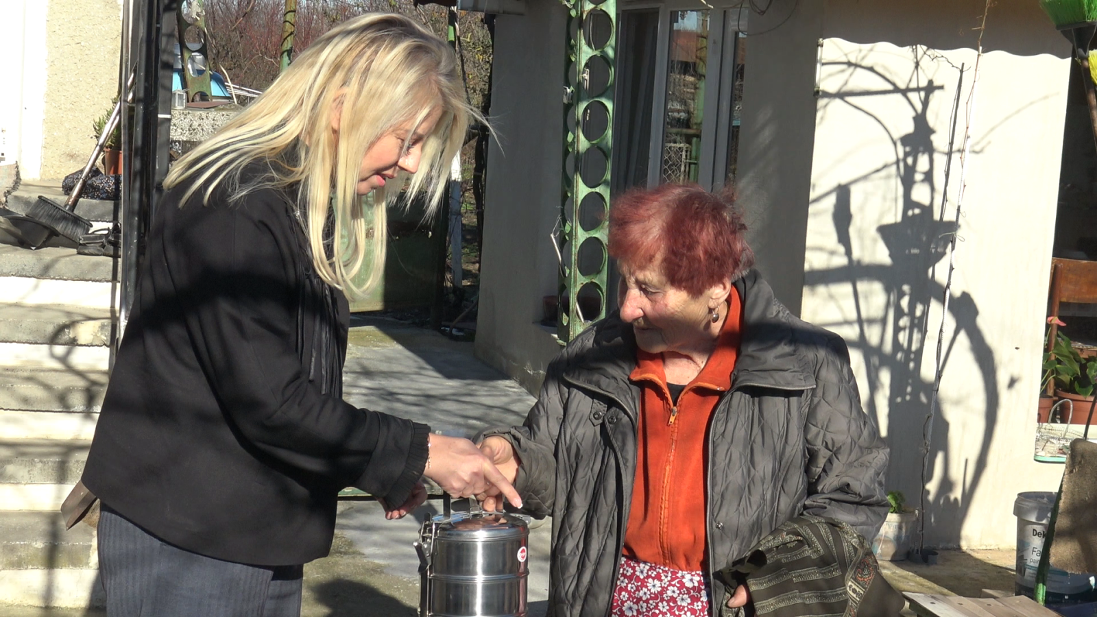 93-годишната Тана Кръстева бе първата в списъка за храна, която възрастната жена получи лично от Соня Георгиева. От две години съм записана за храна от социалния патронаж. Много съм доволна от услугата. Вече не мога да си готвя и това за мен е голяма помощ, добави Тана Кръстева.