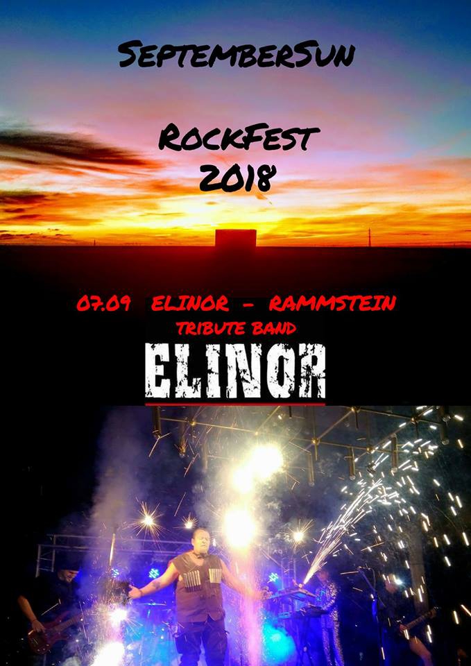 Организаторите на SeptemberSun RockFest 2018 обявиха и първият хедлайнер на музикалното събитие, което ще се проведе в Градски парк в Добрич на 7 и 8 септември. Това е група ELINOR, които несъмнено ще запалят сцената първата вечер с техния уникален RAMMSTEIN трибют. Очакват ви много огън, много пушек и много, много пиро-емоции в края на първата вечер на фестивала!