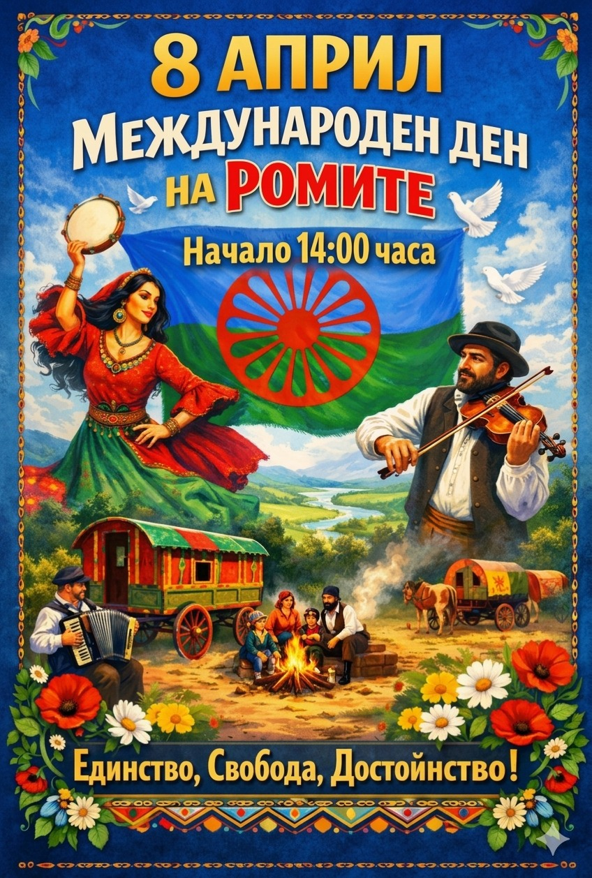 Община Генерал Тошево кани на празнична програма по повод Международния ден на ромите. Събитието ще се проведе на 8 април от 14:00 часа в залата на НЧ „Отец Паисий – 1897“ в село Спасово.