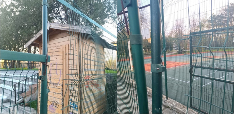 След като още седмица след ремонта върху настилката и оборудването вече личаха първи следи от недоброжелателни действия, сега е нанесена и значителна щета върху оградата на съоръжението. Едно от новите оградни пана, разположено в близост до дървената къщичка за съхранение на инвентара, е изцяло изкъртено. Състоянието, в което е открито, ясно подсказва, че щетата е предизвикана умишлено, с цел да се премине през него и да се използва площадката неправомерно.