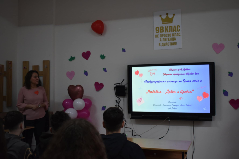 Община град Добрич отбеляза Международната седмица на брака с вдъхновяваща и различна проява. Обредният дом на Добрич организира дискусия на тема „Любовта – Дебит и Кредит“, съвместно с Финансово-стопанска гимназия – Добрич.