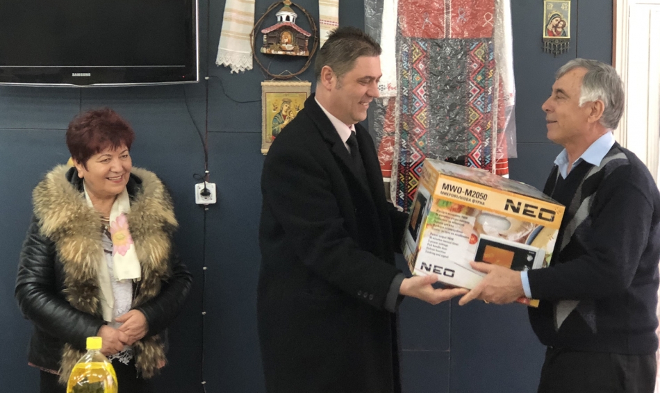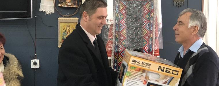 Гостите зарадваха възрастните хора от клуб „Христо Ботев“ с подарък – микровълнова печка, от каквато при предходно посещение те бяха споделили, че имат нужда.