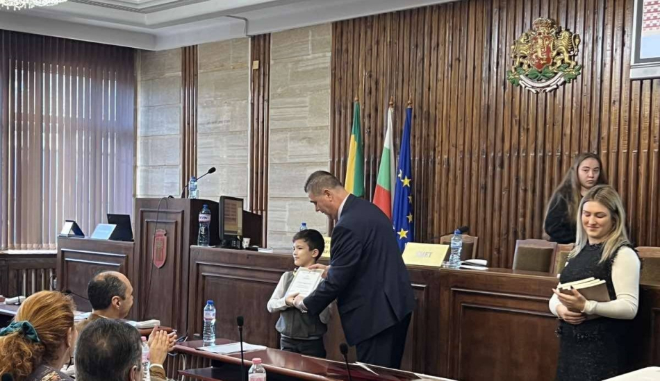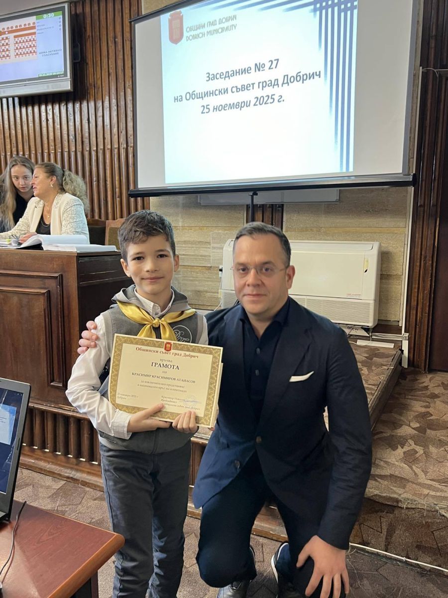 Общински съвет – Добрич награди 24 талантливи и изявени деца от нашия град за успехите им на Национални олимпиади и състезания в различните учебни дисциплини. Преди днешното заседание на местния парламент председателят Красимир Николов връчи на учениците грамота и парична стипендия.