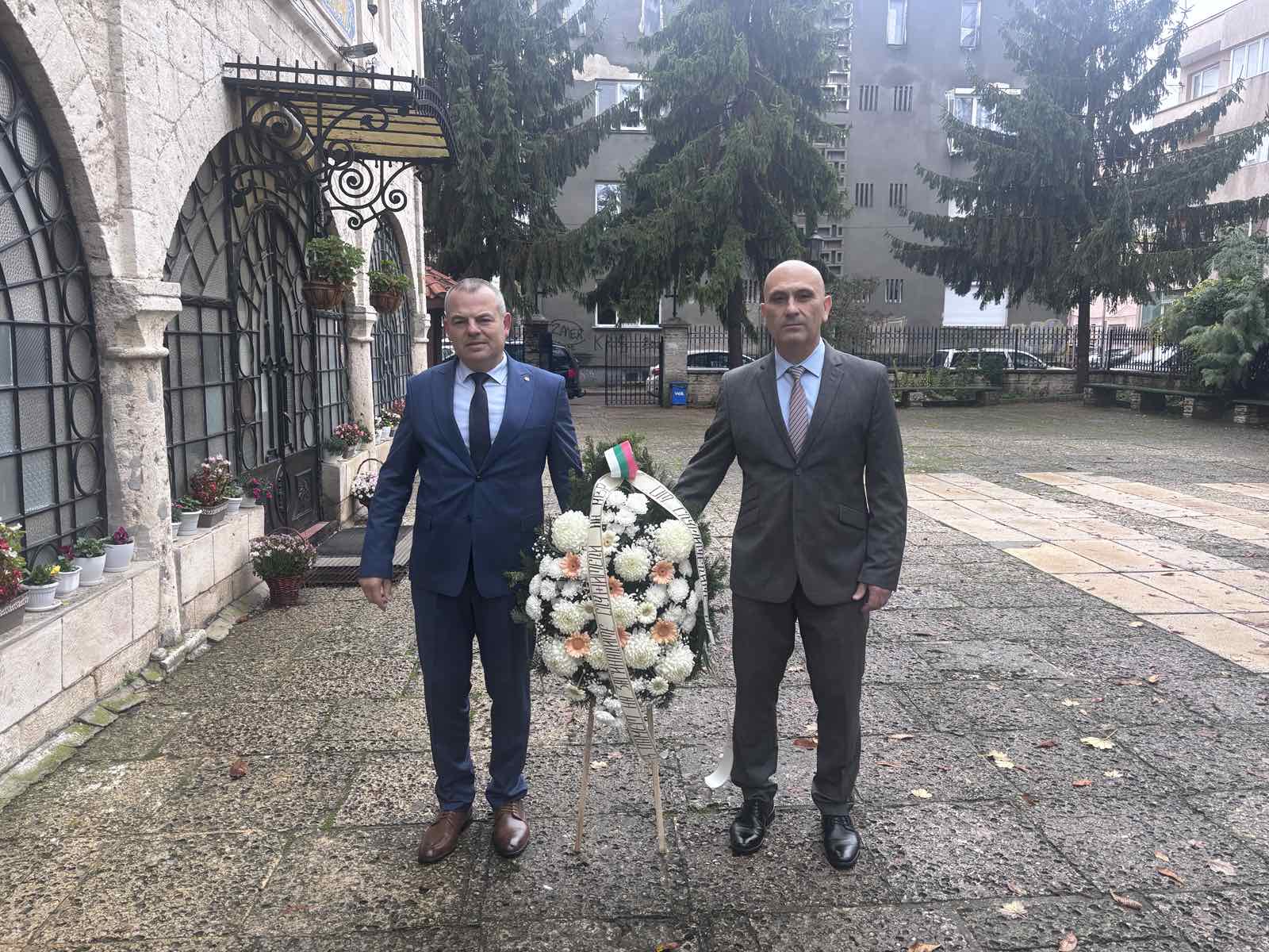 Директорът на ОД МВР Добрич старши комисар Красимир Манолов и зам.-директорът на ОД МВР комисар Светослав Савов поднесоха венец с цветя пред паметната плоча на загиналите служители в двора на църквата „Св. Георги“.