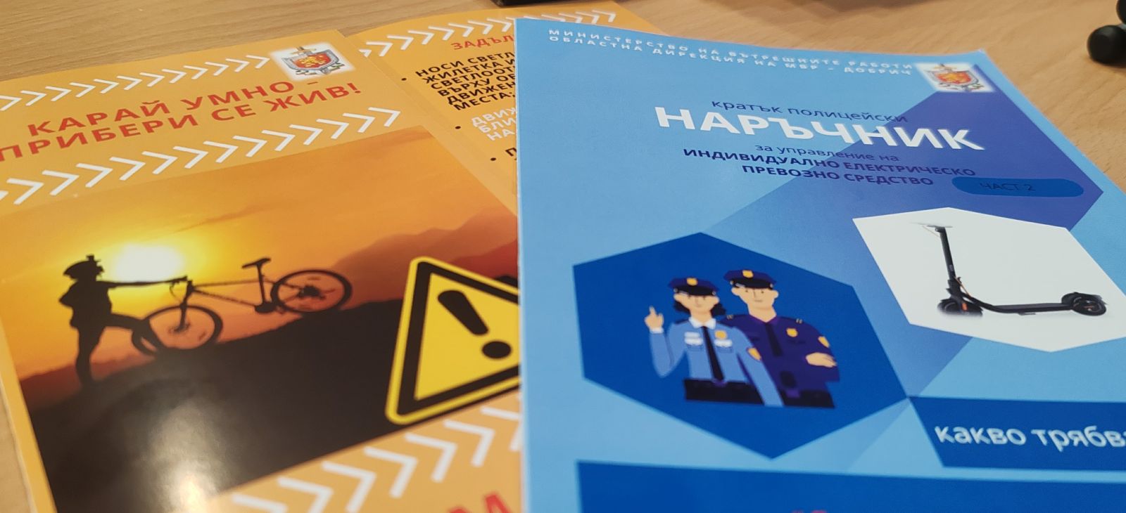 Първата брошура е озаглавена "Правилно карай, прибери се жив, бъди видим – бъди жив". Тя е насочена към водачите на велосипеди и има за цел да напомни основните правила за безопасно движение и да насърчи отговорното поведение на пътя, обясни инспектор Мая Василева от Районна управление – Балчик.