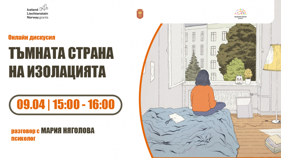 Заедно с психолога Мария Няголова ще поговорим за негативните последици от принудителната изолация и как да се справим с тях, посочват от Младежкия център.