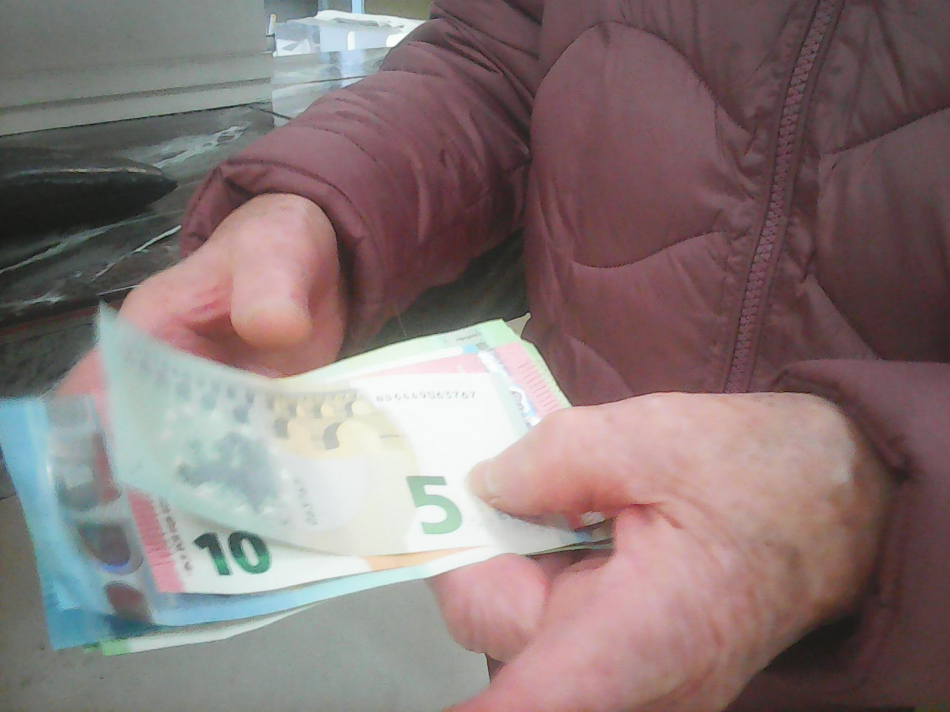 В централния клон на „Български пощи“ в областния град 93-годишна жена внимателно преброи банкнотите – с номинали 5, 10 и 20 евро – и каза, че всичко е точно.