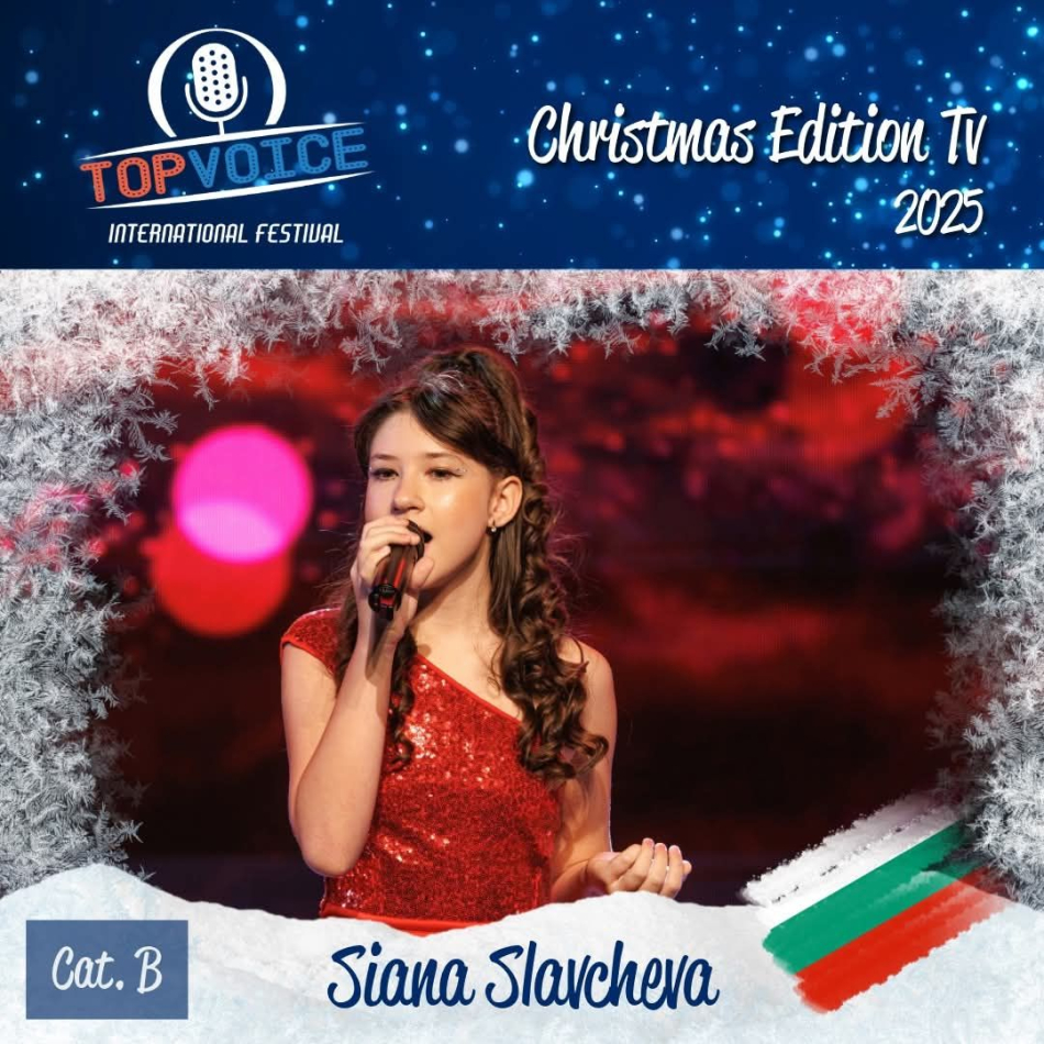 TopVoice и второ място за Сиана в предколедна надпревара. Втората авторска песен "Дом от светлина"е излъчена по италианска телевизия, съобщават от вокално студио "Shining Voices".Припомням, текстът е дело на Костадин Филипов, музиката и аранжиментът са на Светослав Лобошки, а вокалната подготовка е осъществена от Жана Стефанова, дългогодишен вокален педагог на Сиана в Студио за певци "Shining Voices". Красивите песни бързо заживяват свой живот, коментират близките на талантливото дете.Те благодарят на международното жури за високата оценка и на Росица Йорданова, вокален педагог и пианист ,родена в Добрич, за възможността да участват. Според тях това е