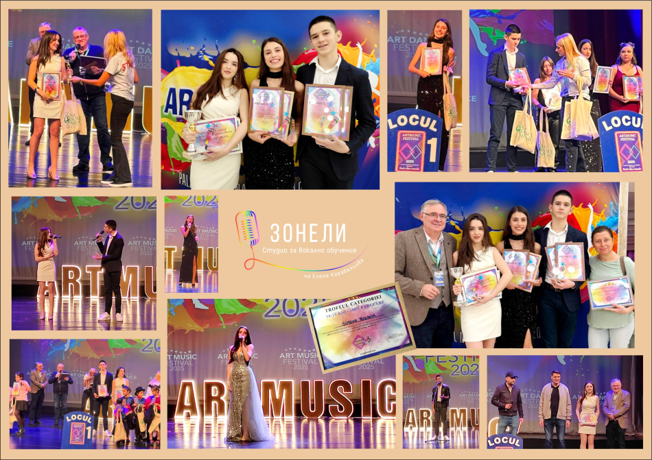 Младите поп изпълнители Симона Тодорова, Даяна Добрева и Пламен Иванов от Студио за вокално обучение „Зонели“ - Добрич взеха участие в Международния конкурс “Art Music Festival” 2025 - Букурещ, Румъния, който се проведе в края на миналата седмица.