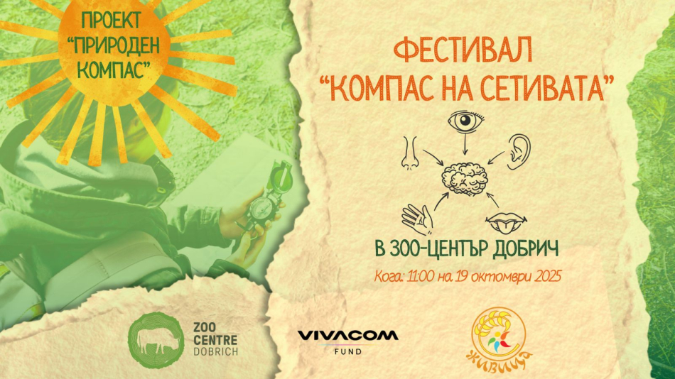 Планираният за днес в зооцентъра Фестивал „Компас на сетивата“, ще се проведе на 19 октомври. Причината е очакваното лошо време тъй като акцент в събитието е новоизградената тактилна пътека, посочват организаторите. Тактилната пътека е 40 метра дълго пространство, създадено за стимулиране на сетивата чрез допир с естествени материали като пясък, дърво, камъни и трева. Тя е изградена с помощта на десетки доброволци през летните месеци и символизира пътя към осъзнатостта и хармонията с живата природа.