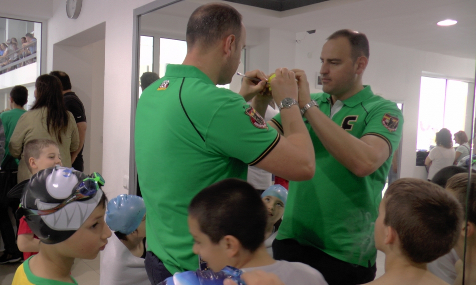 Спомням си също така, че ни отнемаше много време да се придвижим от Смолян до Добрич, продължава своя разказ бившият спортен министър в служебното правителство на Марин Райков. Свързан съм здраво с Добрич, тъй като брат ми е женен за момиче от тук, която е бивша плувкиня – Весела, разказва Петър Стойчев, който се държи земно и достъпно и не отказва да се снима с нито един малчуган, а те го следват по петите в басейна.