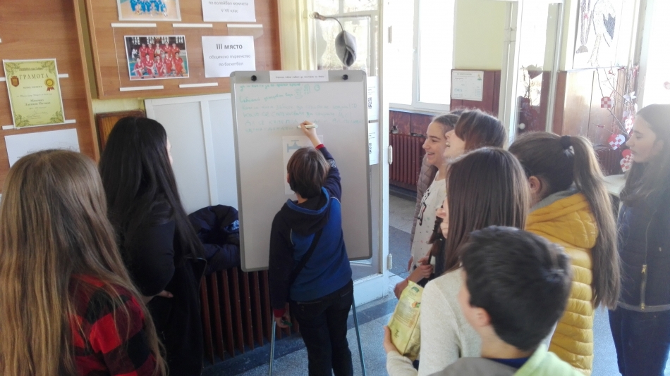 На флипчарт във фоайето на училището ученици от различни класове се включиха в кампанията и написаха своите съвети за пестене на един от най-ценните природни ресурси.