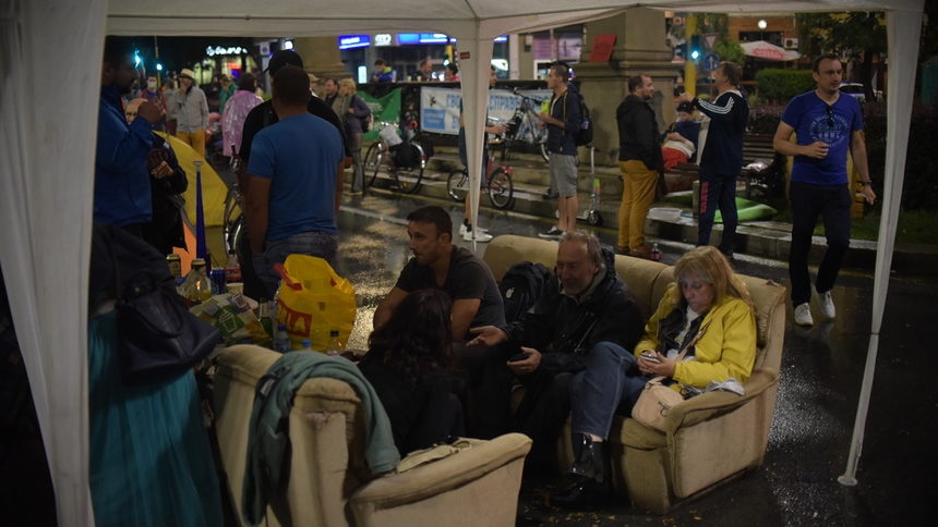 Въпреки проливния дъжд недоволните от властта останаха в палатковите лагери през цялата нощ. Нощта на Орлов мост премина спокойно, като направи впечатление много малкия брой полицаи, които пазят протеста. Малко след 4 ч. се стигна до напрежение между протестиращите и млад мъж, който отправя обиди към събралите се на кръстовището. Силите на реда обаче предотвратиха по-голям конфликт. Плакати с надписи "Аз съм жив щит" и "Оставка" са поставени върху пейките, използвани за барикадата на Орлов мост.