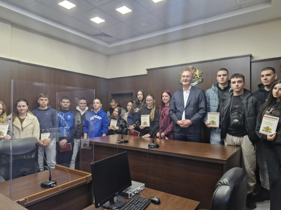 Лекцията премина при проявен засилен интерес от страна на учениците. Съдия Генов ги запозна с разделението на властите според Конституцията на Република България – законодателна, изпълнителна и съдебна власт, а също функциите и структурата на съдебната власт. Представени бяха конституционно уредените принципи на правосъдието, както и разглежданите от районен, окръжен и административен съд дела. Учениците взеха активно участие, като поставиха своите въпроси и получиха съответните отговори.