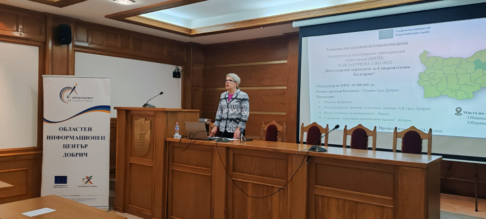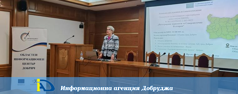 Концепцията „Интегрирани хоризонти за Североизточна България“ бе представена днес пред кметове и кметски наместници от община Добричка. Публичното обсъждане на концепцията, се проведе в заседателната зала на Община Добричка. Не него експертите от ОИЦ-Добрич представиха подробности за комбинираната концепция, която е разработена в партньорство между Община град Добрич, Община Добричка, МБАЛ - Добрич, Висше училище по мениджмънт - Варна и Търговско-промишлена палата - Добрич. В нея са обединени единадесет проектни идеи от различни сектори с общ бюджет от 38,3 млн. лв., изцяло безвъзмездни средства. Тези средства идват от 6 различни оперативни програми, уточни управителят на Областен информационен център – Добрич Геновева Друмева. Тя направи уточнението, че като община от селски тип, Община Добричка е ограничена откъм възможности за кандидатстване по всички дейности.