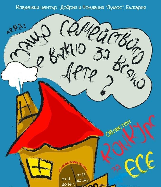 В Деня на християнското семейство Младежки център - Добрич и Фондация "Лумос" благодарят на всички, които изпратиха своите есета за участие във II Областен конкурс за есе на тема "Защо семейството е важно за всяко дете?". В получените над седемдесет есета, децата и младите хора са преплели много чувства и емоции, впечатления и разсъждения, отговоряйки на поставения въпрос. Eсета пристигнаха от Тервел, Шабла, Каварна, Добрич и Община Добричка.