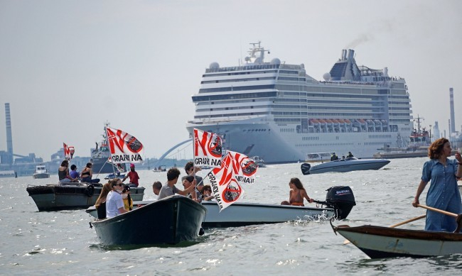 Недоволни са тези, според които огромните туристически кораби са опасни за Венеция и морските пространства, през които те преминават през града, атракция, която според тях трябва да се избегне.