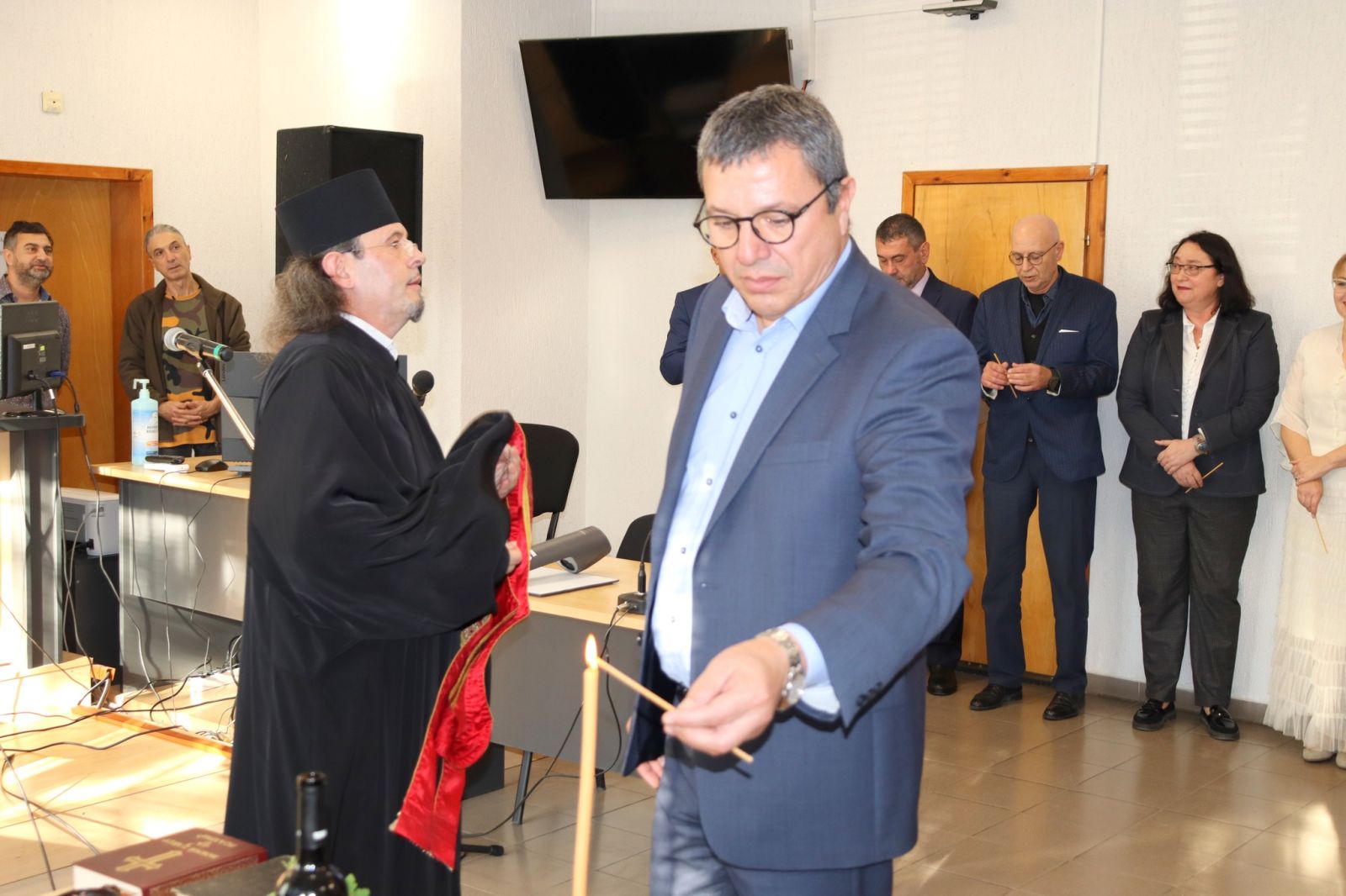 След отслужения водосвет програмата продължи със специален музикален поздрав за служителите на съда. Две млади дами впечатлиха присъстващите с изпълнения на китара, които внесоха тържествено и емоционално настроение в празничния ден.