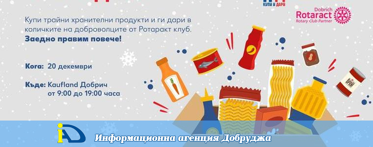 Ротаракт клуб Добрич организира благотворителната инициатива „Купи и дари“, която ще се проведе днес от 9:00 до 19:00 ч. в хипермаркет Kaufland – Добрич.