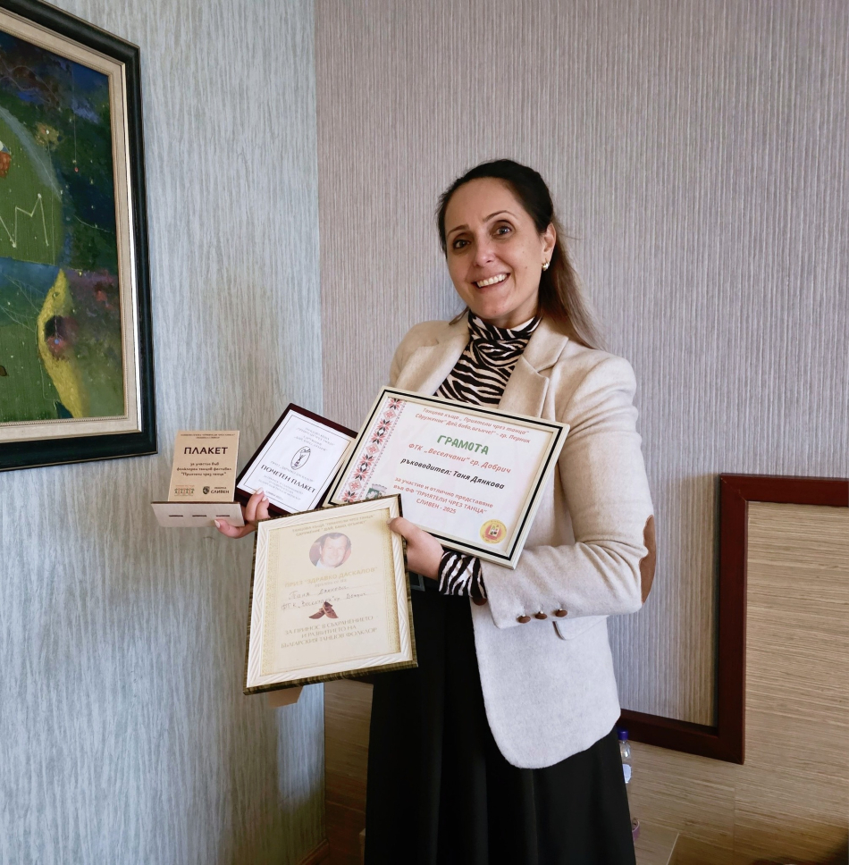 Ръководителят на фолклорен танцов клуб „Веселчани“ – гр. Добрич, Таня Дянкова, получи приз на името на бившия хореограф на ансамбъл „Добруджа“ – Здравко Даскалов.