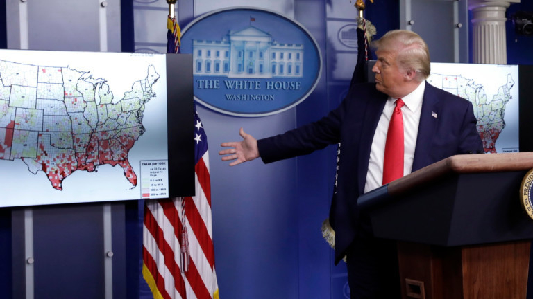 Президентът Доналд Тръмп заяви, че лечението може да намали смъртността с 35%. Това идва ден, след като той обвини FDA, че възпрепятства въвеждането на ваксини по политически причини.