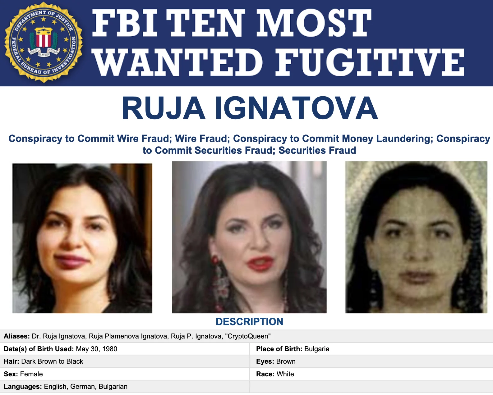 Според американските власти, в периода 2014-2019 г. Ружа Игнатова и Карл Себастиан Грийнууд, заедно с други участници, са организирали глобална измамна схема, представяна като криптовалута и разпространявана чрез многостепенен маркетинг. Инвестиции от над 4 милиарда долара са били привлечени от хора по целия свят.