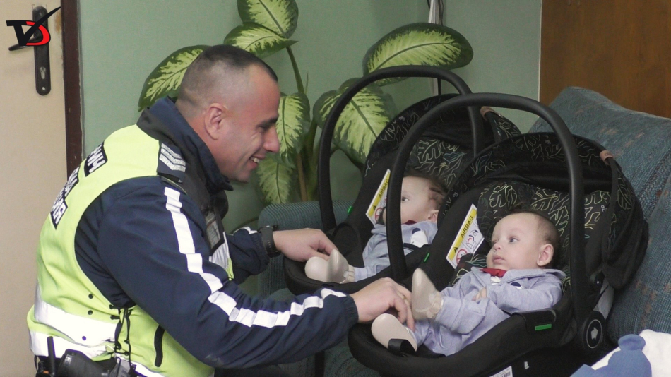Днес семейството на Петя и Марчо Митеви посети КАТ - Добрич, за да изкаже своята благодарност към пътния полицай Тодор Гроздев, който през август ескортира спешно автомобила им до АГ-болница във Варна. Благодарение на бързата реакция на мл. инспектор Гроздев, на бял свят се появиха близнаците Матей и Никола.