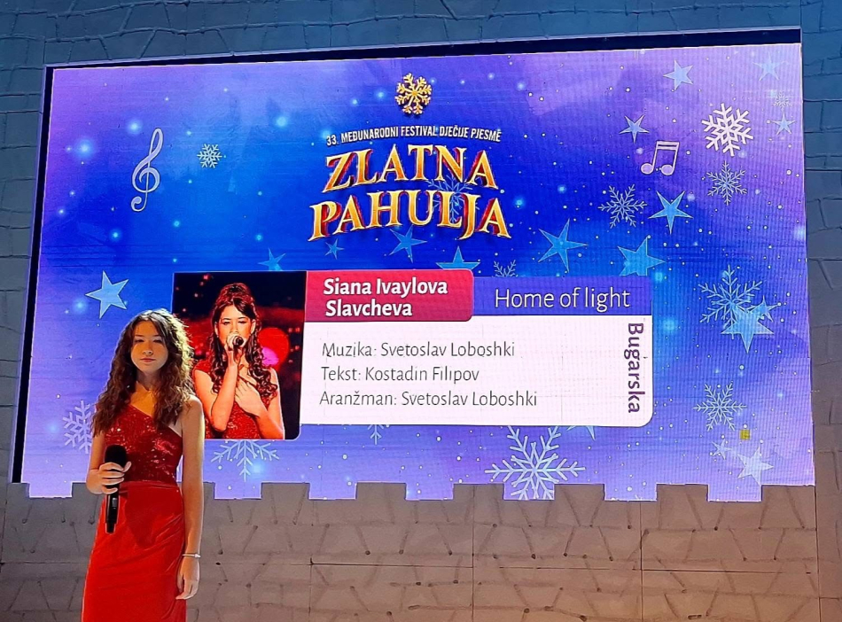През изминалия уикенд в град Рожайе, Черна гора, се проведе XXXIII Международен фестивал за детска и младежка песен “Златна снежинка”. България бе представена от Сиана Славчева от Добрич, която се завърна с втора награда за “Интерпретация” и парична награда.
