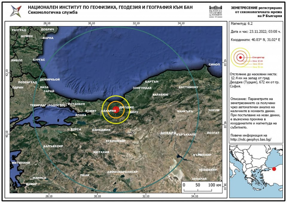 Има данни, че земетресението е усетено и у нас - в Бургас, Варна и Балчик, съобщи Националният сеизмологичен център към института по геофизика, геодезия и география на БАН.