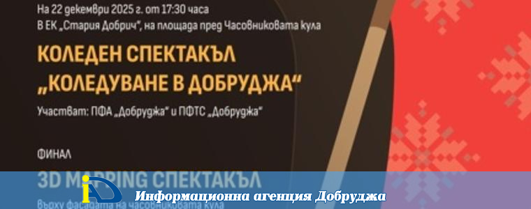 Коледен спектакъл „Коледуване в Добруджа“ ще се проведе на 22 декември от 17:30 ч. на площада пред Часовниковата кула в етнографския комплекс „Стария Добрич“. Събитието е финала на инициативата на Регионален исторически музей – Добрич за превръщане на етнографския комплекс в Коледно градче през декември.