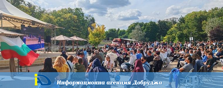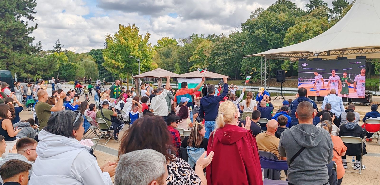 Няколко стотин добричлии се събраха около сцената на скейт парка в Градски парк „Свети Георги“, за да гледан на специално изградената видеостена финала от световното първенство по волейбол. От Община Добрич в партньорство с ПК „Спорт и младежки дейности“ към Общински съвет, организираха масовото гледане на финала.