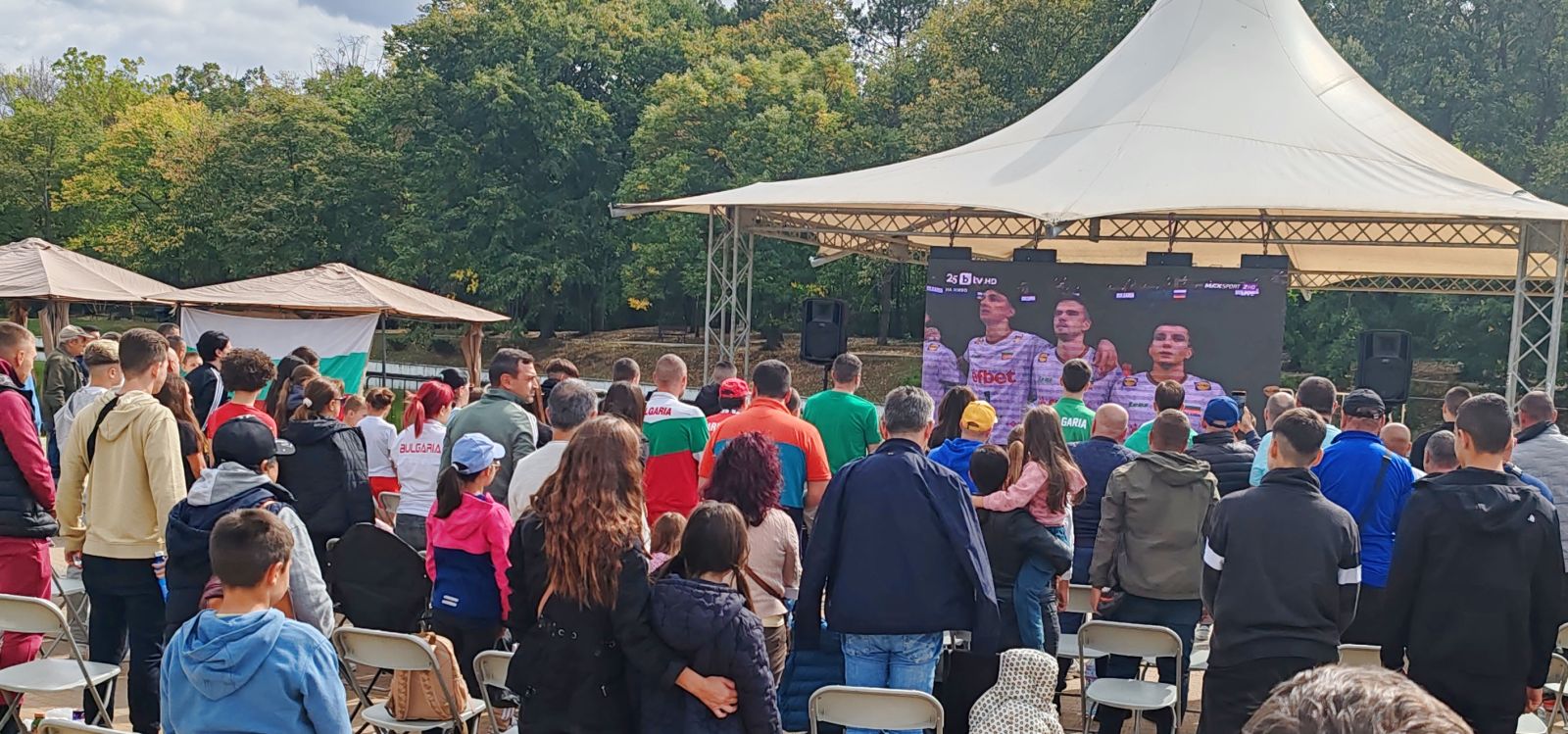 Освен видеостена, на която се излъчваше мачът, за феновете бяха осигурени и столчета, но те се оказаха недостатъчни за всички решили да гледат историческия мач за България в парка.